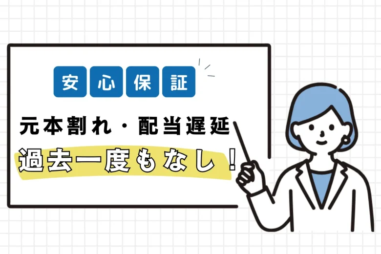 約6年間で計36件のファンドを扱ってきましたが、いまだ一度も元本割れや配当遅延がなく、投資家の皆様から安心して投資できると大変好評をいただいております。