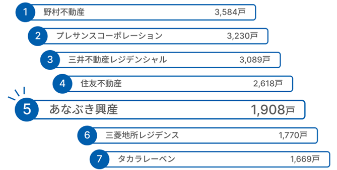 2024年の新築分譲マンションにおける売上・事業主別販売戸数ランキングでは第5位にランクインしました!